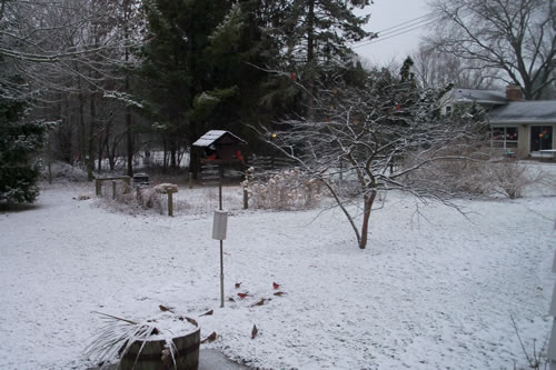 were many red birds (Cardinals) here today with many other kinds of