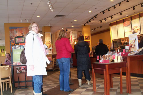 | Dottie is in line to buy lunch at Paneras